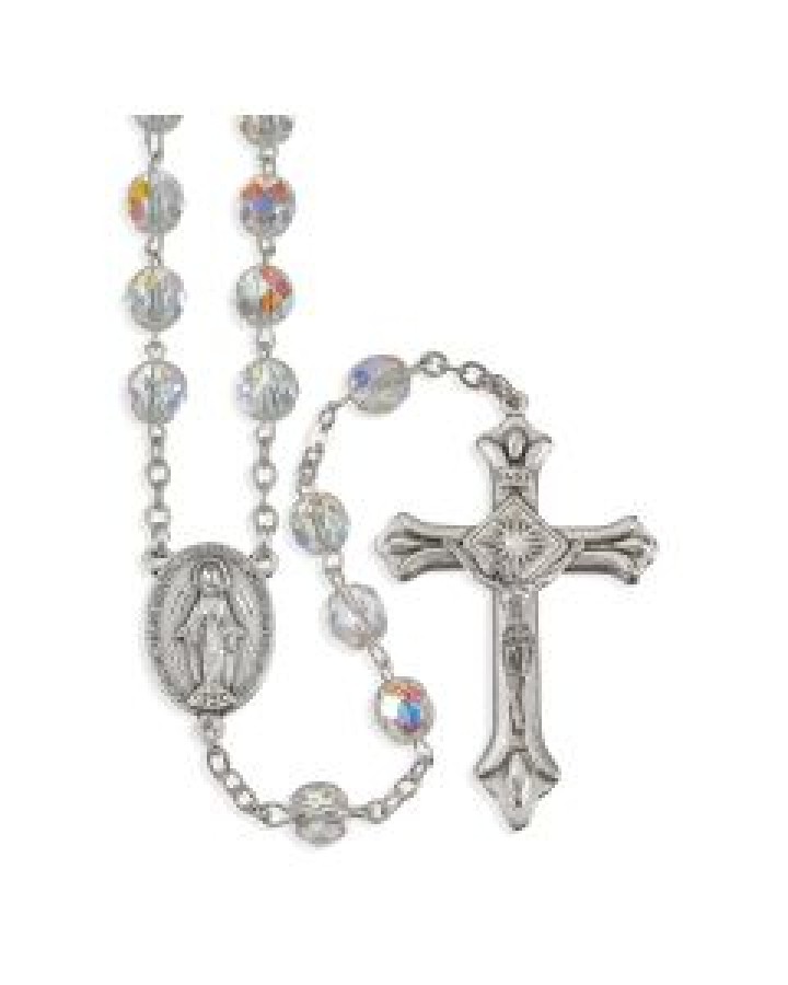 7mm Crystal Bead Aurora Borealis Rosary 21″