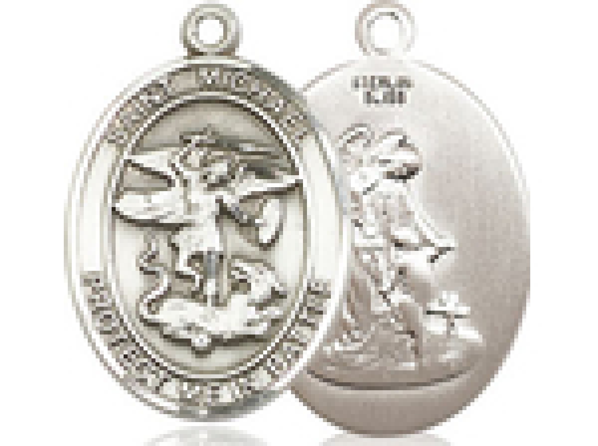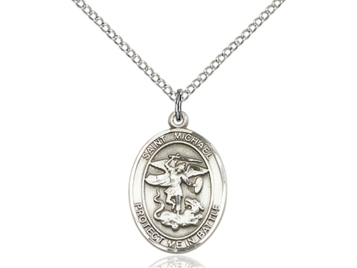 Sterling Silver St Michael Guardian Angel Pendant on a 18 inch Light Rhodium Light Curb Chain.