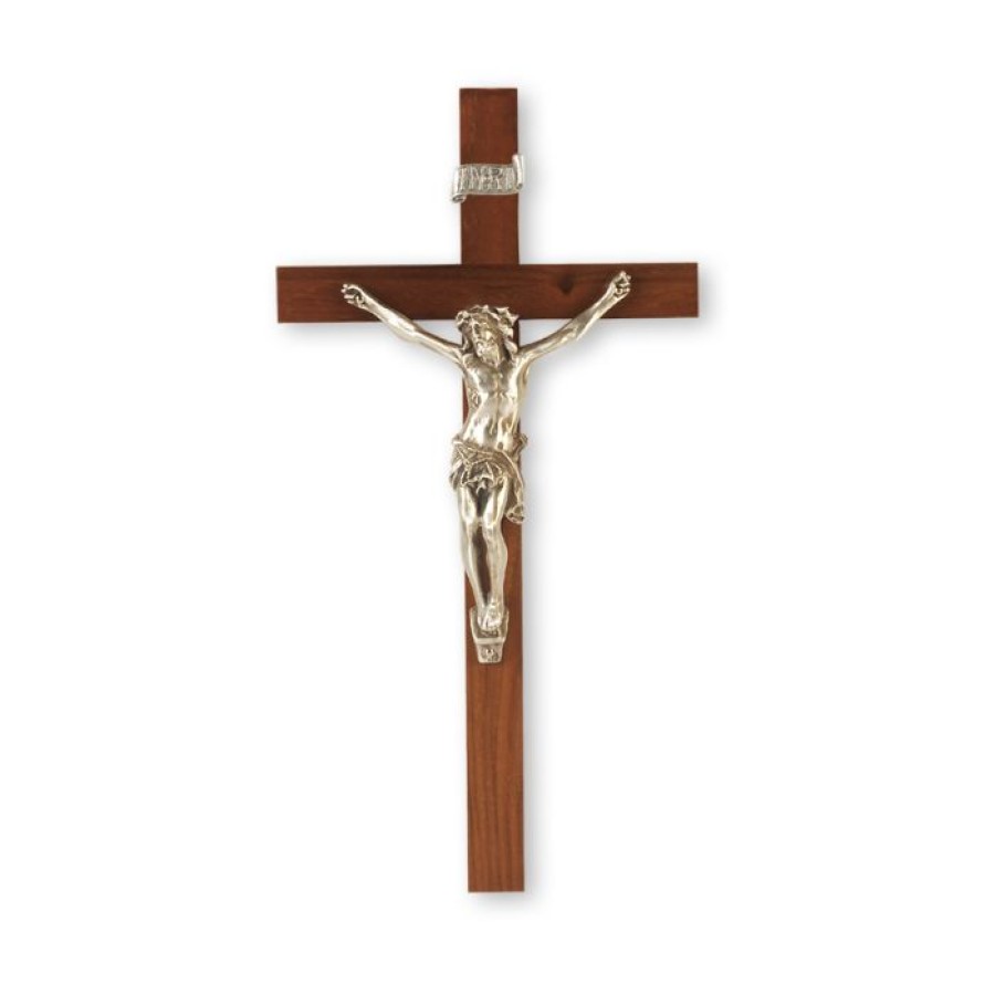 18P-9W2 9″ Walnut Wood Cross with Antiqued Fine Pewter Corpus