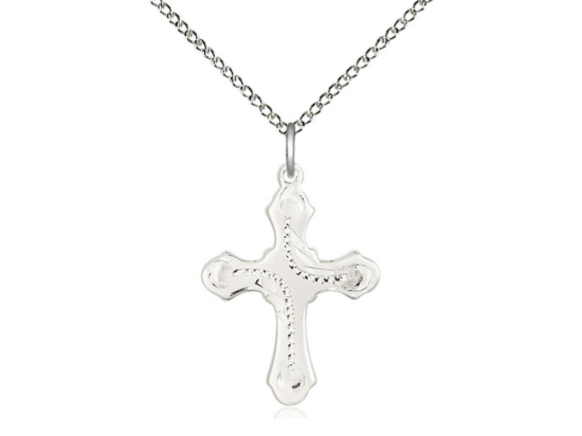 Sterling Silver Cross Pendant on a 18 inch Sterling Silver Light Curb Chain.