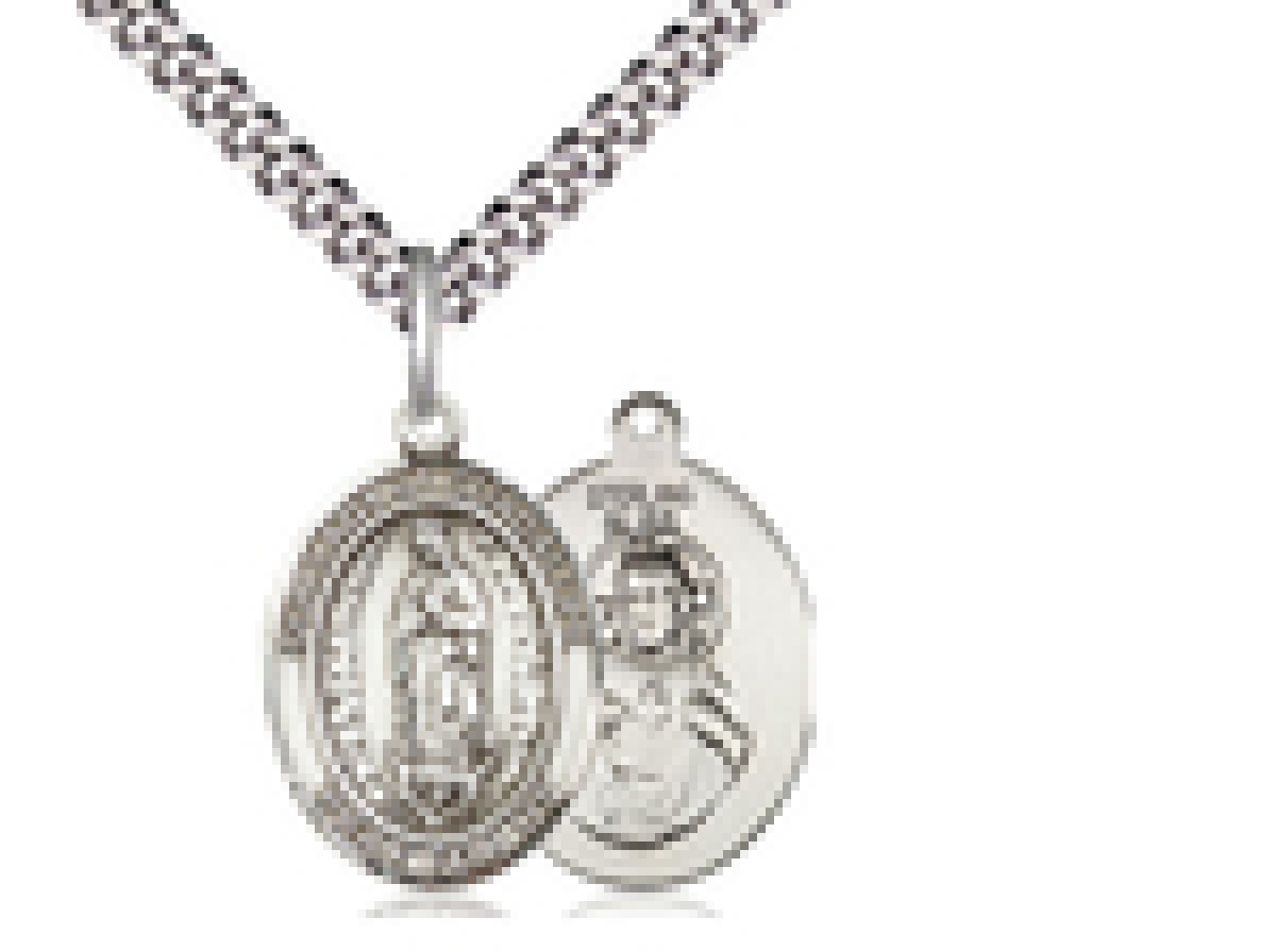 Sterling Silver Our Lady of Guadalupe Pendant on a 18 inch Light Rhodium Heavy Curb Chain.
