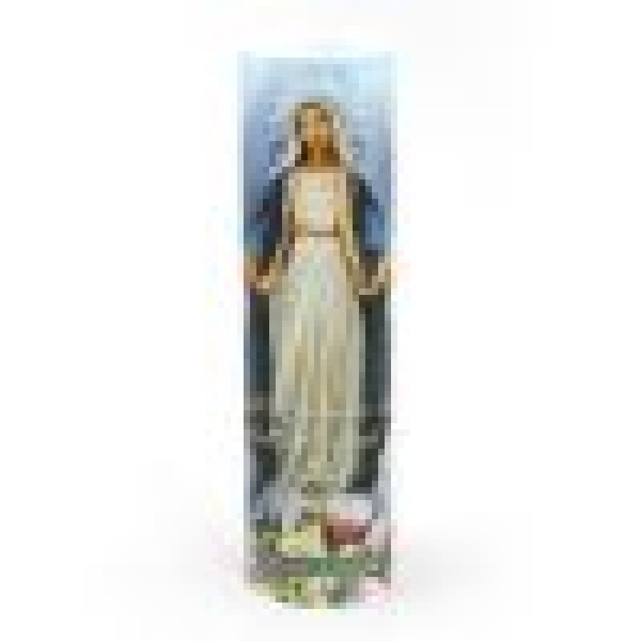 LED Flameless Prayer and Devotional Candles are a safe option for burning extended hour flame candles in any environment for all ages. The flickering flame looks like authentic candlelight and the timer allows for 6 hours of light repeated every 24 hours. Candle is unscented and stays cool to the touch. Requires 2 AA batteries, not included. Dimensions: 8″ by 2.375″