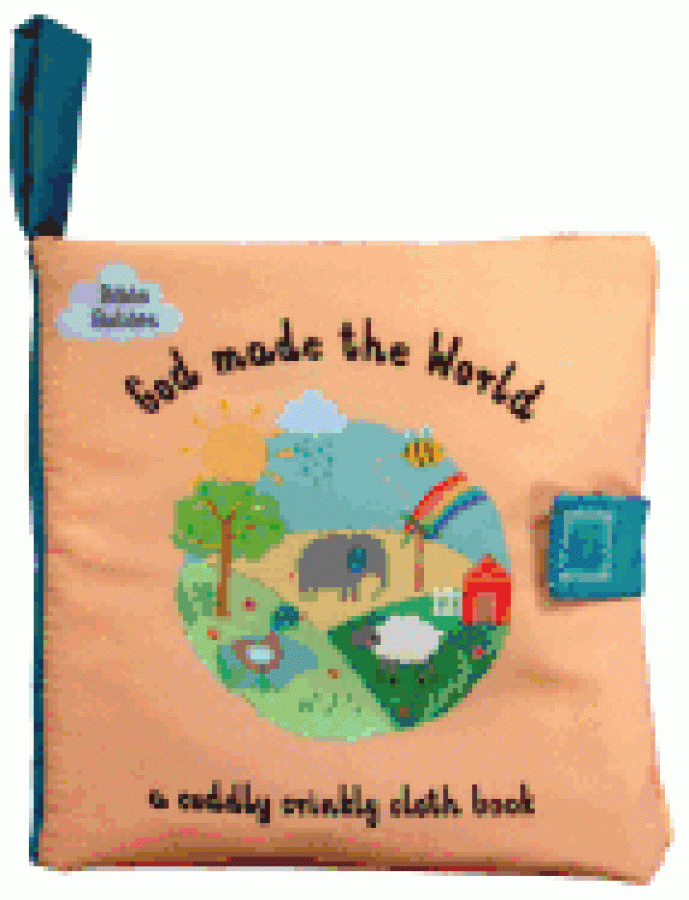 God Made the World also includes a child-safety mirror so baby can see herself and know she’s a part of God’s design. For parents, a Velcro closure keeps the book shut, and a hanging tab can attach the book to a stroller, purse, or toy so it can go wherever they go. It comes packaged in a bag to keep it clean and includes a header card for easy hanging display.