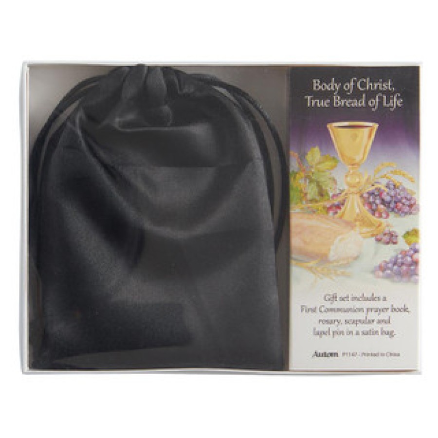 Includes all the essentials a Communicant would need – First Communion prayer book, laminated scapular, lapel pin and rosary