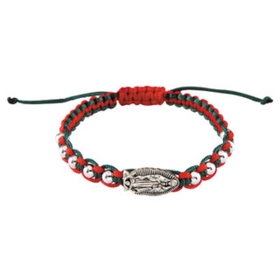 Features an Our Lady of Guadalupe-shaped medal with small silver beads